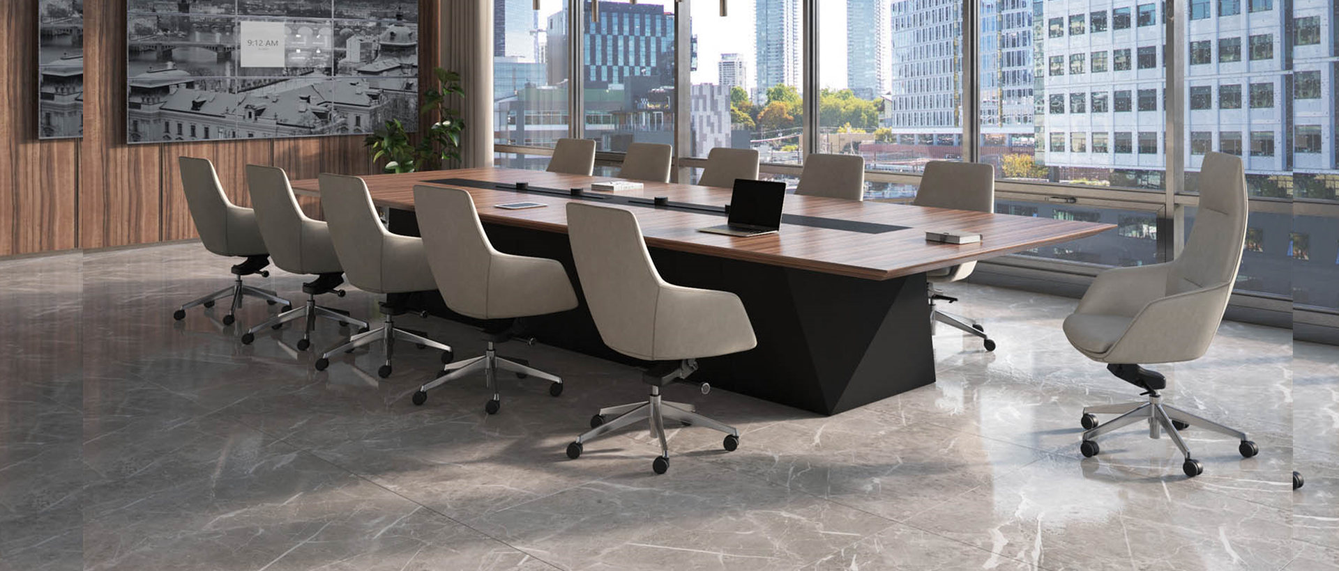 如何挑選最好的會(huì)議室桌椅設(shè)計(jì)會(huì)議室的關(guān)鍵在于舒適性和功能性。畢竟,您可能會(huì)在房間里花費(fèi)一到四個(gè)小時(shí)來參加重要的協(xié)作會(huì)議或董事會(huì)會(huì)議。因此,選擇合適的會(huì)議桌椅以使您、您的團(tuán)隊(duì)和任何客戶在空間中感到舒適至關(guān)重要。 -